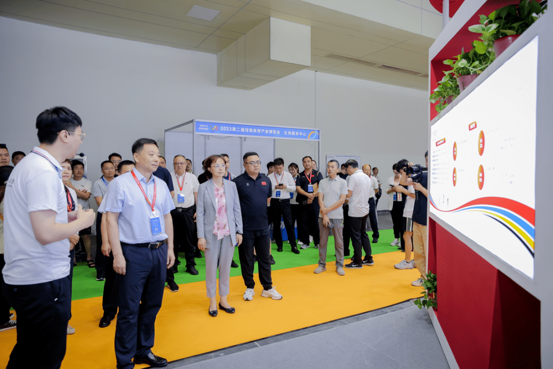 上午10时,博览会正式启幕。河南省体育局党组书记、局长马宇峰,河南省体育局副局长孙晓红一行来到体育彩票展区,听取了河南体彩上市销售23年来的发展历程,观看了历史成就展览,并对河南体彩人锚定高质量发展目标,踔厉奋发,勇毅前行给予了肯定。