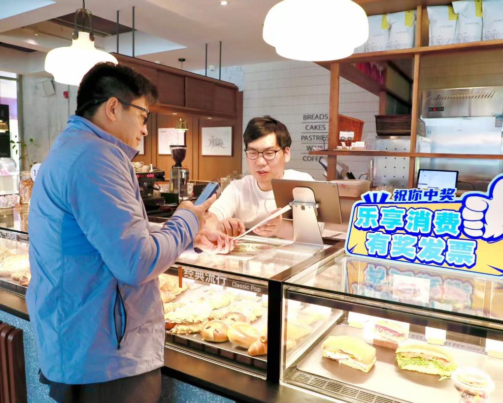 在上海徐家汇商圈,市民陈女士在商场选购服装后,听到收银员提示可以参与发票抽奖,随即选择开具发票并现场上传,不久便收到中奖提示。“本来只是来买件衣服,没想到多了一份惊喜。”