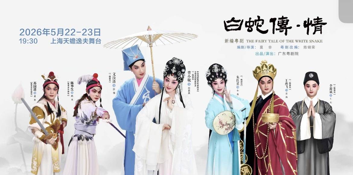 5月22日、23日,《白蛇传·情》将登陆上海天蟾逸夫舞台,该剧是首届中国戏剧梅花奖国际化优秀剧目展演剧目。该剧由一级导演莫非编剧、导演,著名粤剧编剧陈锦荣担任粤剧改编,一级演员、文华表演奖与中国戏剧梅花奖双料得主曾小敏,一级演员文汝清领衔主演。